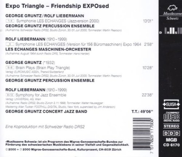 01. Gruntz, George Percussion Ensemble "Les echanges (Jazzversion 2000): Introduzione"  02. Gruntz, George Percussion Ensemble "Allegro vivace"  03. Gruntz, George Percussion Ensemble "Stretta"  04. Gruntz, George Percussion Ensemble "Cadenza"  05. Les Echanges Maschinen Orchester "Les echanges (Version für 156 Büromaschinen)"  06. Gruntz, George Percussion Ensemble "Brainplay #1"  07. Gruntz, George Percussion Ensemble "Brainplay #2"  08. Gruntz, George Percussion Ensemble "Brainplay #3"  09. Gruntz, George Concert Jazz Band "Symphony for Jazz Ensemble: Allegro vivace"  10. Gruntz, George Concert Jazz Band "Lento"  11. Gruntz, George Concert Jazz Band "Allegro"  12. Gruntz, George Concert Jazz Band "Presto"  13. Gruntz, George Concert Jazz Band "Allegro molto"