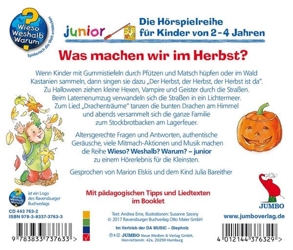 01. Reuters, Inga "Ansage" 02. Elskis, Marion Und Kinder "Mein Kleines Wieso? Weshalb? Warum? Lied (Intro)" 03. Elskis, M. "Was Ist So Schoen Am Herbst?" 04. Kinder Der Schule Luttherothst "Der Herbst, Der Herbst, Der Herbst Ist Da" 05. Elskis, M. "Was Machst Du Gerne Im Herbst?" 06. Kind "Drachentraeume" 07. Elskis, M. "Wie Sieht Die Stadt Im Herbst Aus?" 08. Kronbuegel, Jens "Karusselmusik" 09. Elskis, M. "Wann Gibt Es Im Garten Viel Zu Tun?" 10. Meyer-Goellner, Matthias Und Ki "Feuerkanon" 11. Elskis, M. "Was Machen Die Tiere Im Herbst?" 12. Trad. "Alle Voegel Sind Schon Da (Instrumental)" 13. Elskis, M. "Was Kannst Du Im Wald Erleben?" 14. Meyer-Goellner, Matthias Und Ki "Waldbodenfuesse" 15. Elskis, M. "Wann Laufen Wir Mit Der Laterne?" 16. Meyer-Goellner, Matthias Und Ki "Sankt Martin" 17. Elskis, M. "Was Ziehst Du Im Herbst An?" 18. Elskis, Marion Und Kinder "Mein Kleines Wieso? Weshalb? Warum? Lied (Extro)"